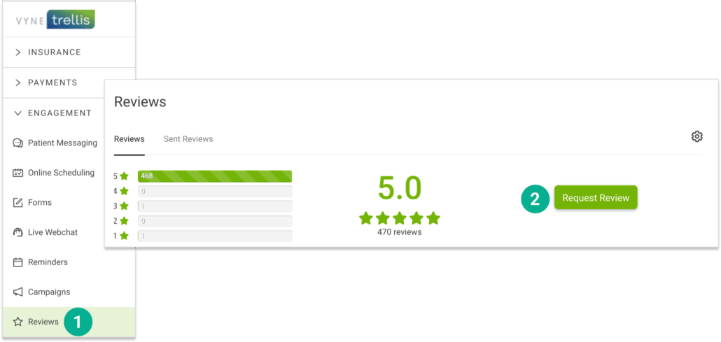 3. Your Sent Reviews tab lets you see all request that have been sent to patients request a review.