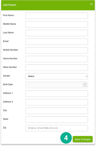 4. Complete the patient’s information and select the “Save Changes” button.
