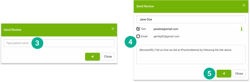 5. You can also manually send a request to a patient for a review by click on the Request Review button on the main Reviews page.