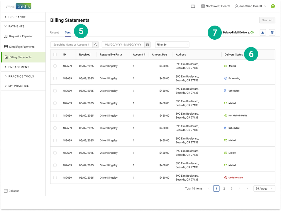 5. Your Sent tab gives you a detailed status of all sent billing statements