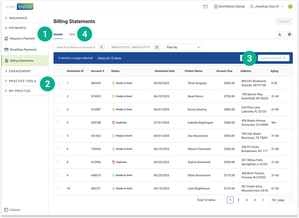 2. If you have Unsent Billing Statements in your queue, select the statements you want to send