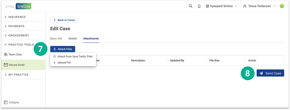 8. Once all attachments are complete, click Send Case.