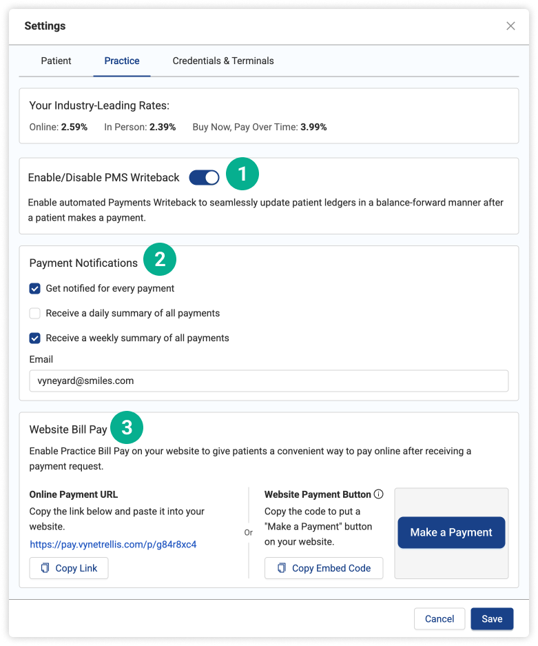 2. Add your email to receive immediate notifications when patient payments are made.