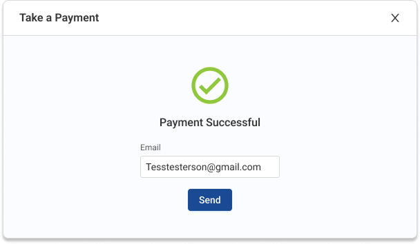 Use terminal to complete payment using tap, swipe, or the chip reader. After the payment processes, enter patient email and send electronic receipt.