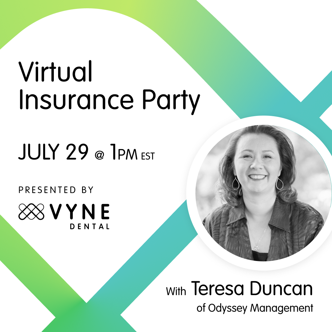 Teresa Duncan has presented a comprehensive coding update webinar and hosted a mid-year insurance check-in to keep dental offices up-to-date. Now she’s ready to hang out and have fun at this quarter’s Virtual Insurance Party – and you’re invited!