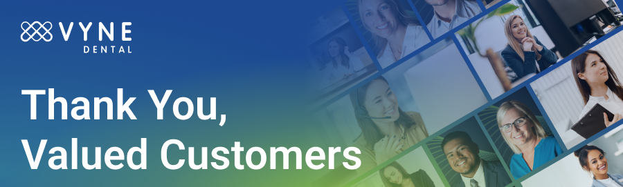 Your continued support is a key motivator to our team and we truly appreciate you choosing Vyne Dental as a key partner to your practice.