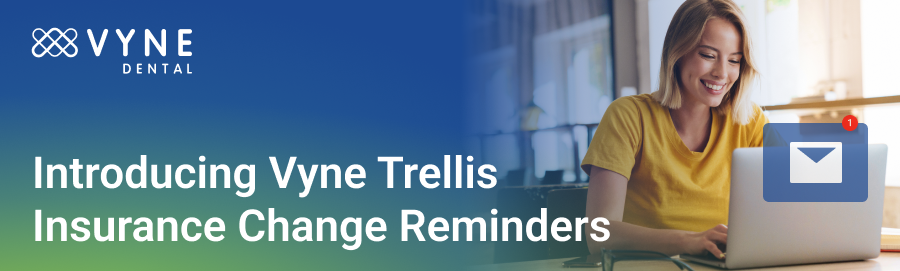Ready to revolutionize your dental practice and elevate patient care through proactive insurance change reminders? Visit VyneDental.com today to learn more about Vyne Trellis and discover how this innovative solution can transform your practice management. Stay ahead of insurance changes, enhance patient communication, and ensure the financial health of your dental office with Vyne TrellisⓇ Insurance Change Reminders. Your journey towards a more efficient and patient-centric practice starts here! Learn more today at vynetrellis.com.